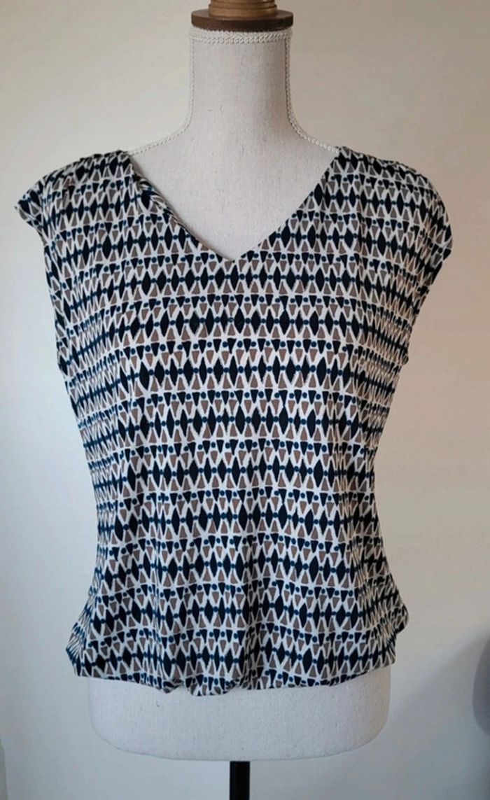 Blouse sans manches à motifs bleu marine blanc beige La Redoute Taille 1 ou 36 - photo numéro 1