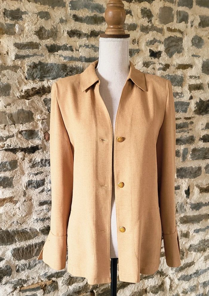 Très jolie veste blazer jaune moutarde Un Jour Ailleurs Taille 38 Carrure 39,5cm avec les épaulettes Aisselles 48,5cm Longueur 68cm Jolis boutons + 1 de rechange En très bon état #matka27_taille38 #taille38 #veste #blazer #chic #ceremonie #habillé #unjourailleurs #été