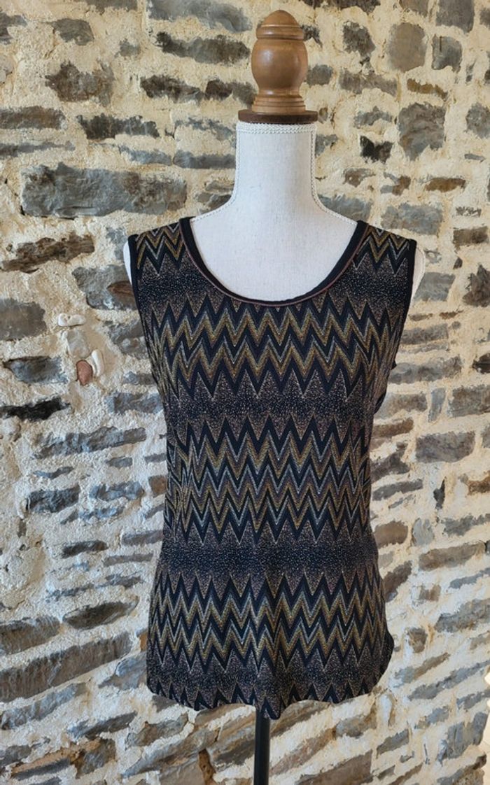 Débardeur noir et doré à motifs en relief Clara Vitti Taille 42 44 - photo numéro 1