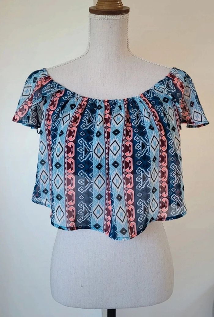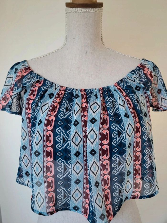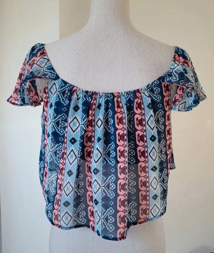 Top court crop top à motifs aztèques rose et bleu Tally Weijl Taille M ou 38 - photo numéro 1