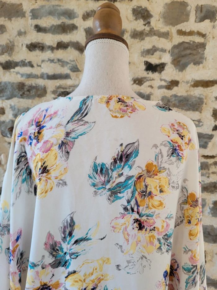 Blouse manches très larges écrue à fleurs jaune rose turquoise Blancheporte Taille 42 - photo numéro 8