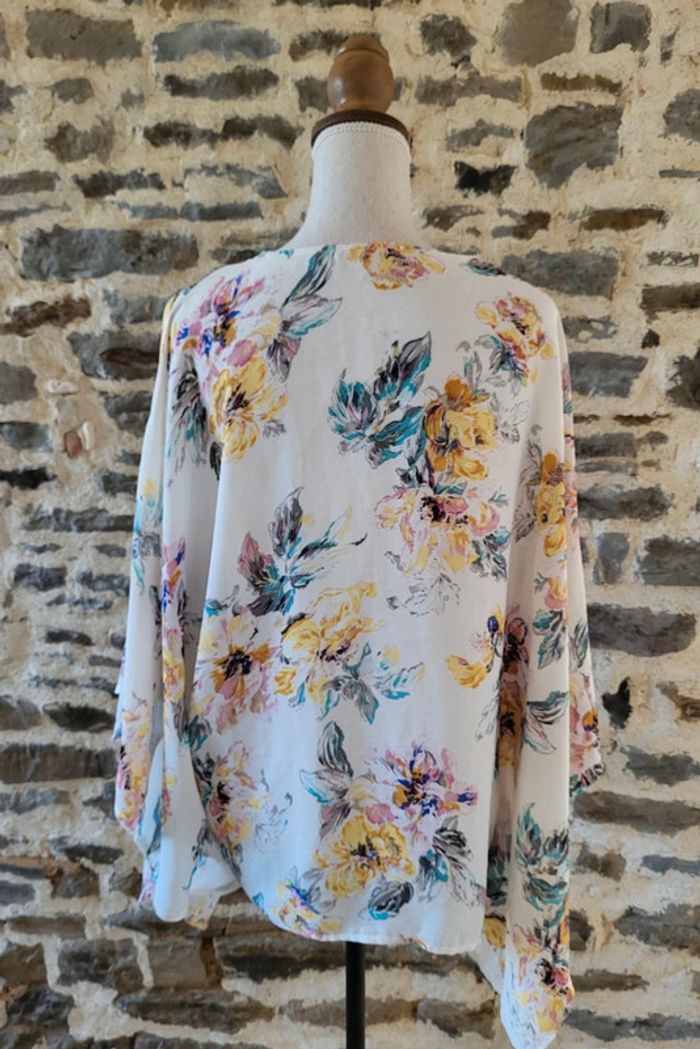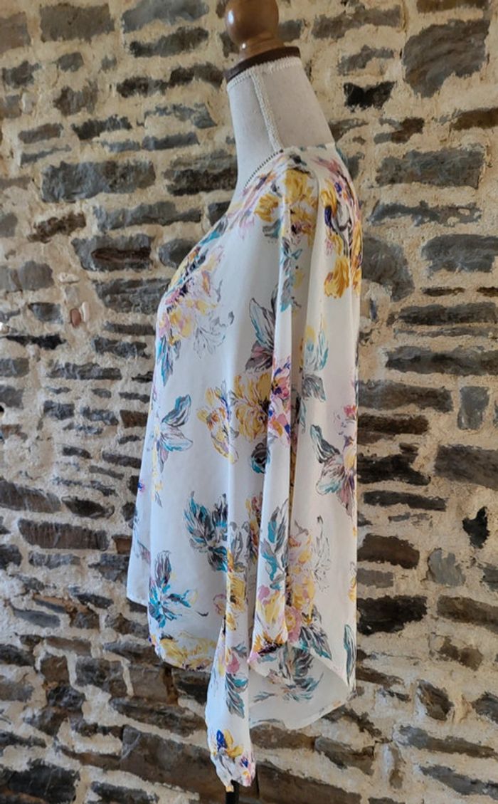 Blouse manches très larges écrue à fleurs jaune rose turquoise Blancheporte Taille 42 - photo numéro 3