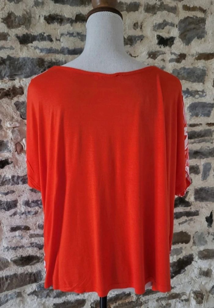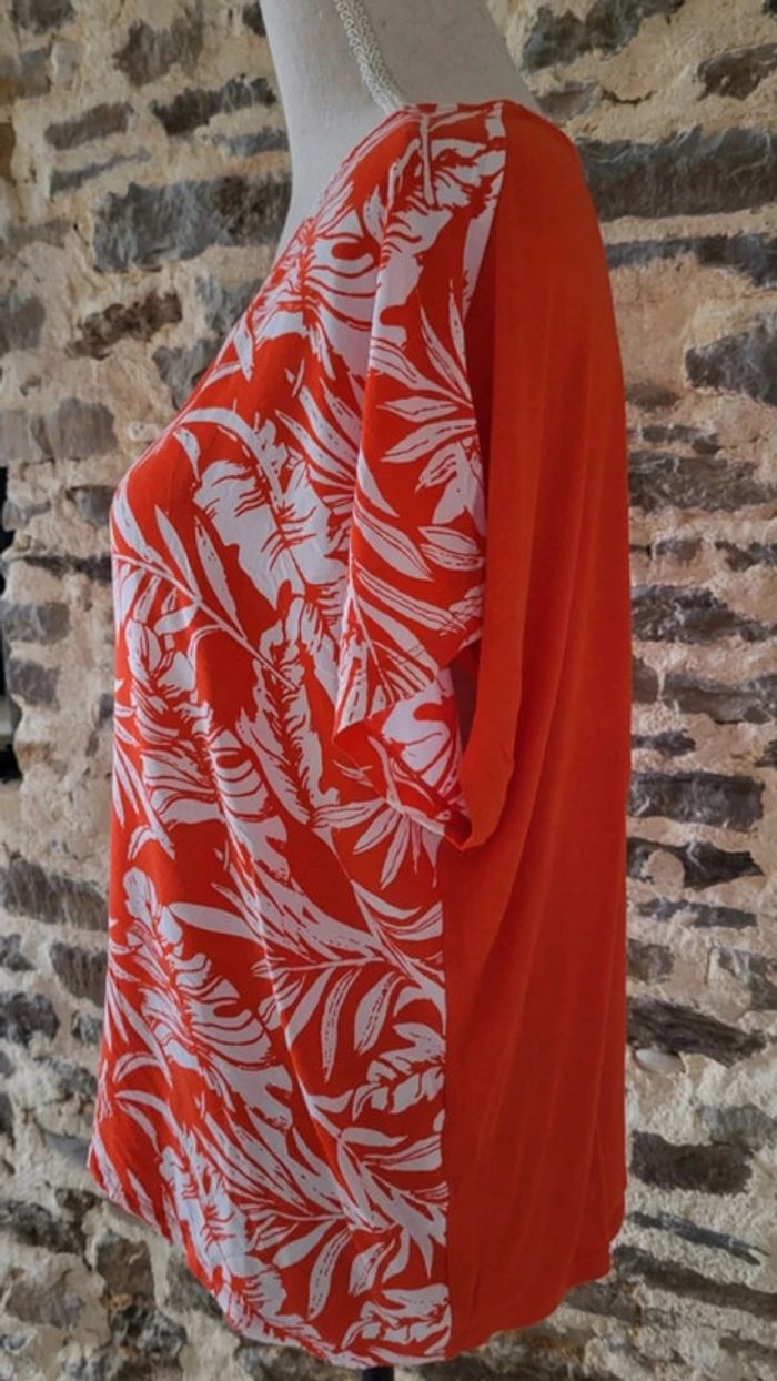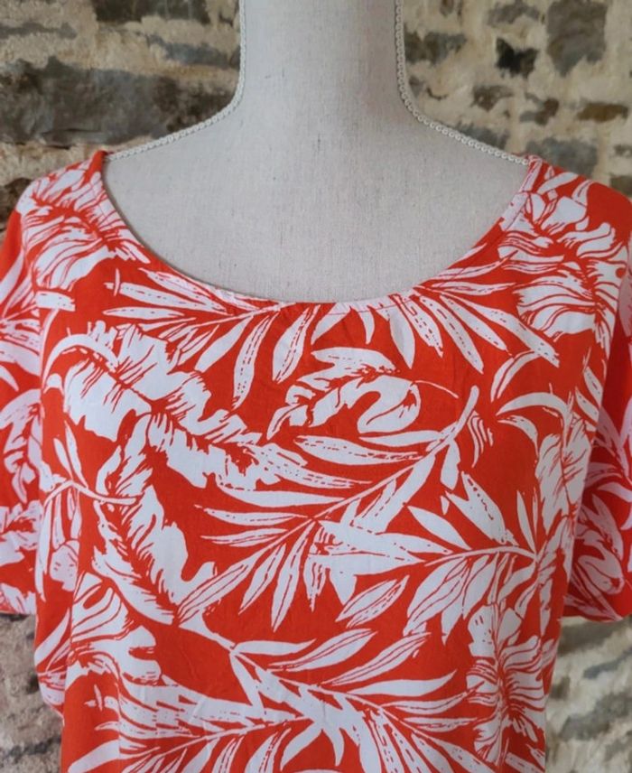 Blouse manches courtes à motifs feuilles rouge et blanche Gémo Taille 46 - photo numéro 7