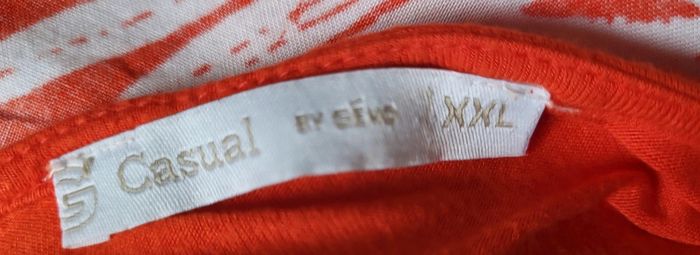 Très jolie blouse à motifs feuilles blanches sur fond rouge, manches courtes Gemo Taille XXL ou 46 (taille grand car coupe ample) Aisselles 60cm Longueur 56cm 100% viscose,  légère fluide et agréable à porter En très bon état   #matka27_taille46 #blouse #tshirt #taille46 #gemo #rouge #blanc #motiffeuilles #été #manchescourtes