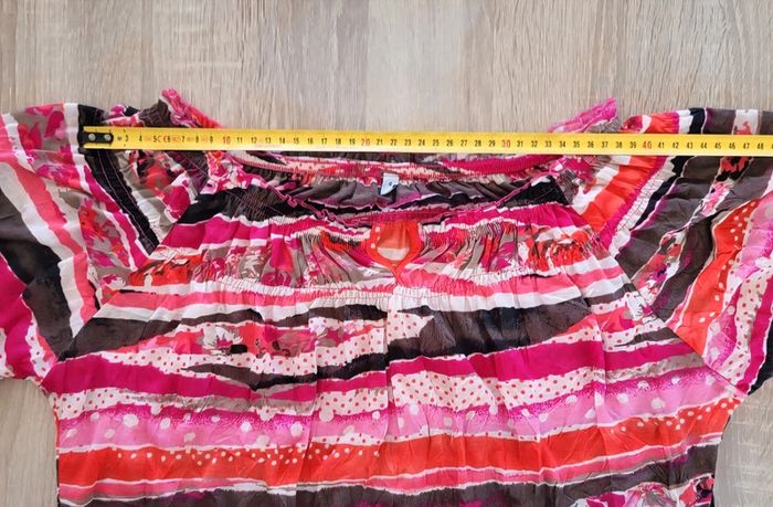 Très jolie blouse manches courtes à motifs rose fushia La Redoute (étiquette manquante) Taille 4 ou 40 42 Aisselles 53,5cm Longueur 65cm Contient de l’elastane,  tissu extensible Légère, fluide et agréable à porter En très bon état #matka27_taille40 #matka27_taille42 #blouse #taille4042 #laredoute #fushia #rose #motifs #été
