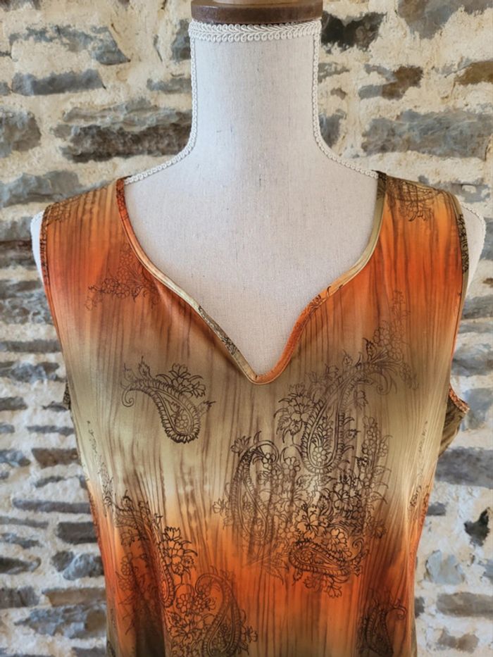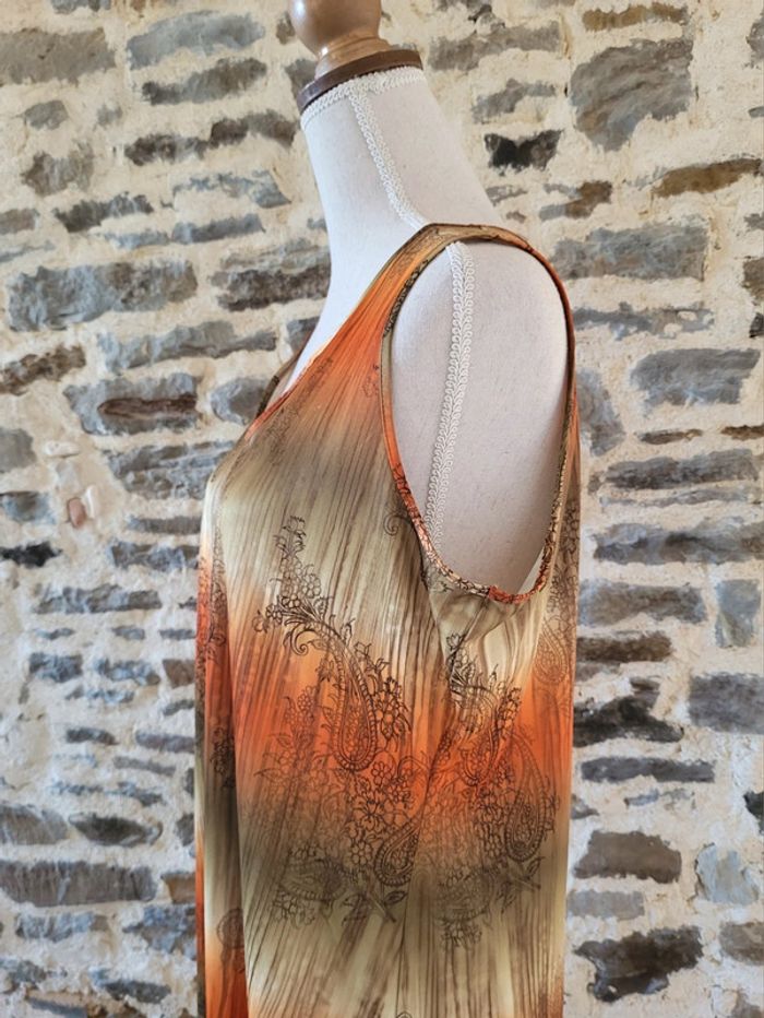 Robe d'été sans manches orange kaki à motifs La Redoute Taille 42 - photo numéro 4