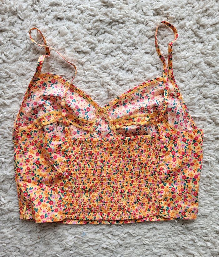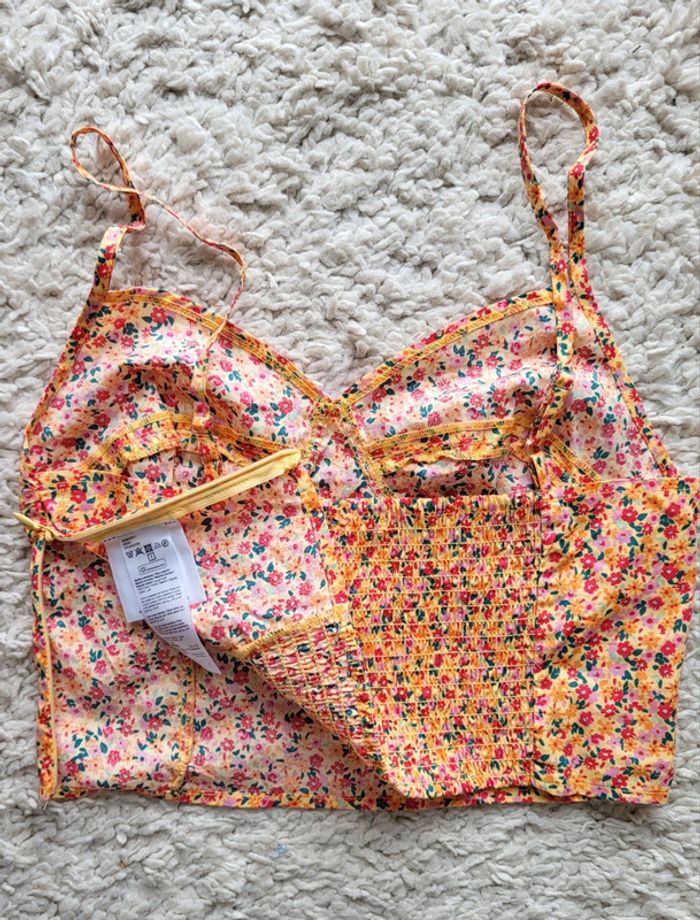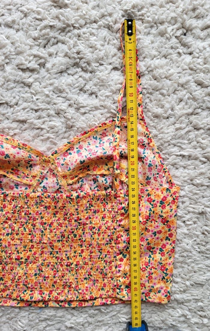 Crop top fleuri jaune rouge vert en coton Gemo Taille 38 - photo numéro 8