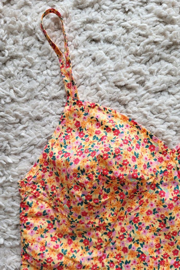 Crop top fleuri jaune rouge vert en coton Gemo Taille 38 - photo numéro 9
