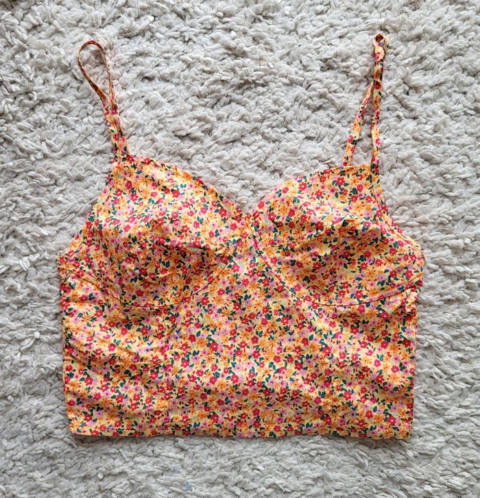 Crop top fleuri jaune rouge vert en coton Gemo Taille 38 - photo numéro 1