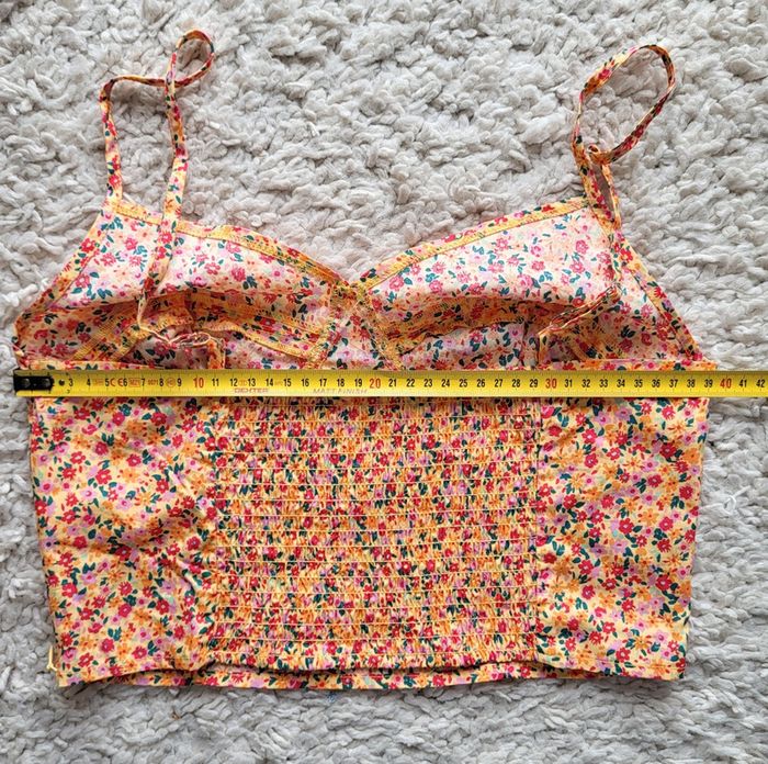 Crop top fleuri jaune rouge vert en coton Gemo Taille 38 - photo numéro 11