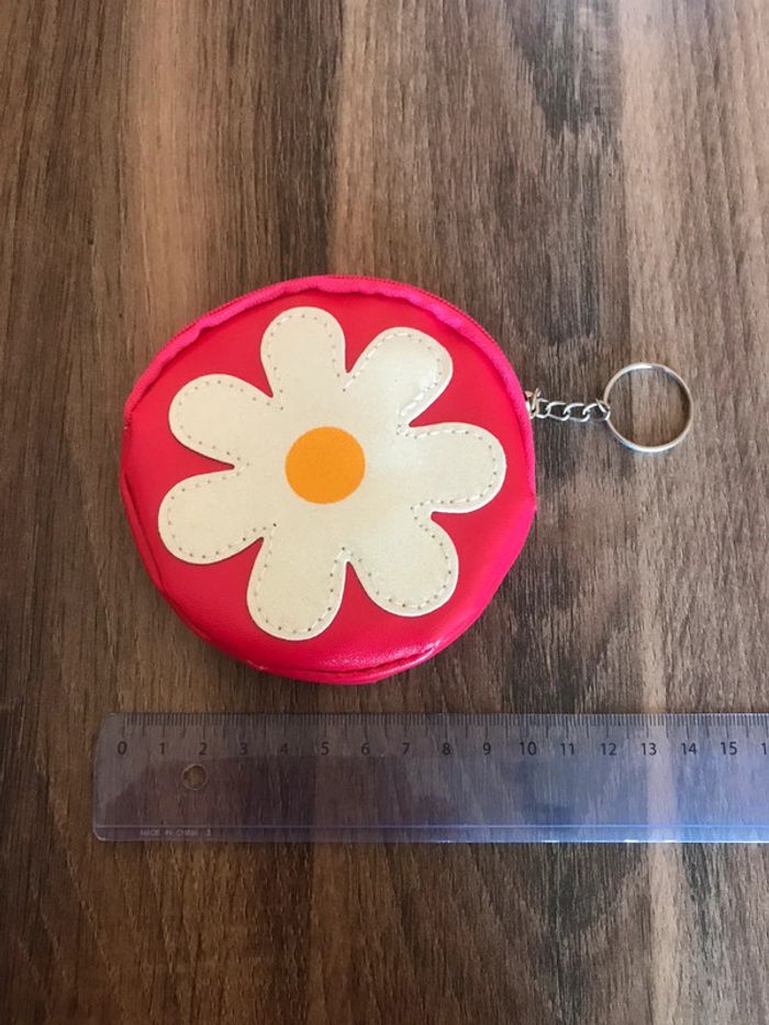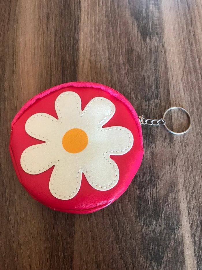 Bonjour Porte-clés porte-monnaie. Fuchsia avec motif cousu marguerite. En simili cuir. En très bon état. #carinelpcportecles