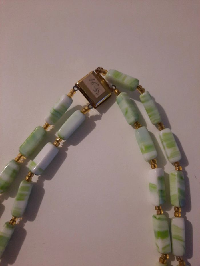 Prix en francs sur l'étiquette. #lora11vintage #lora11collier #colliervert #colliervertetblanc