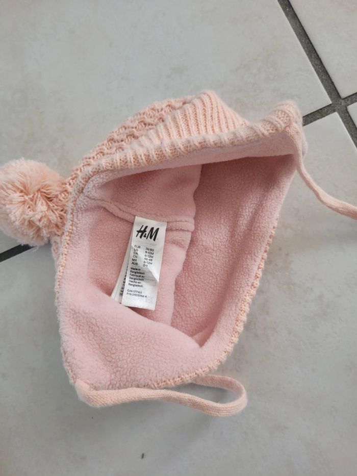 Bonnet avec pompon et lanières pour fermer H&M taille 6/12 mois