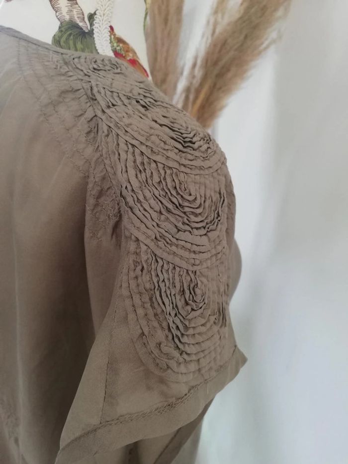 Je vends cette tunique de la marque Zara en très bon état. 100% soie coloris kaki Taille XS (taille grand) #tuniquezara #zara #tuniqueensoie