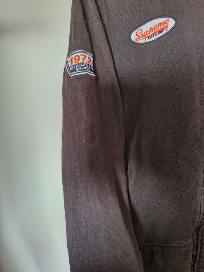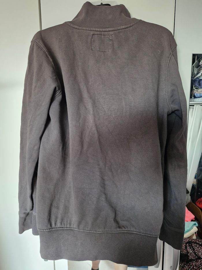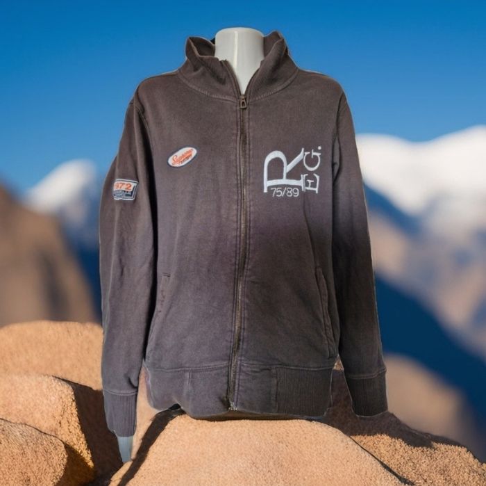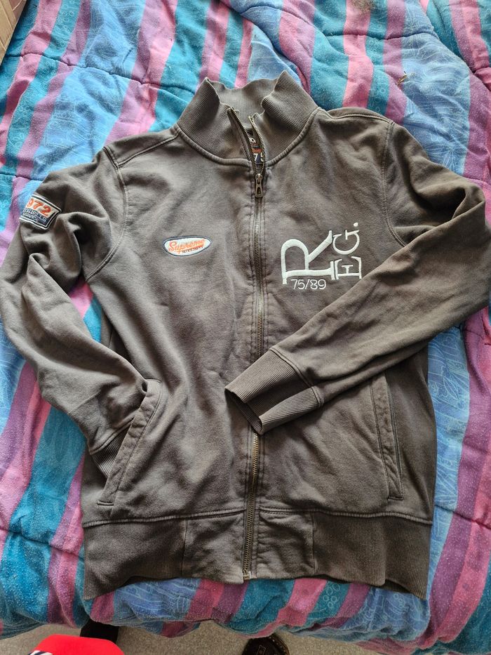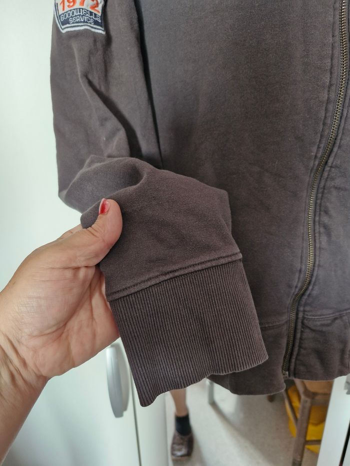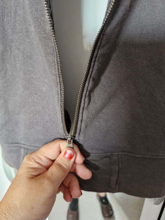 Très joli sweet a zip 2 poches latérales un de chaque côté Logos de la marque sur plusieurs endroits Molletonné à l'intérieur et en tissu extensible pour plus de confort Mesures Aisselles de 49cms à plat à 54cms en tirant Hauteur 68cms Je n'ai pas remarqué d'anomalie