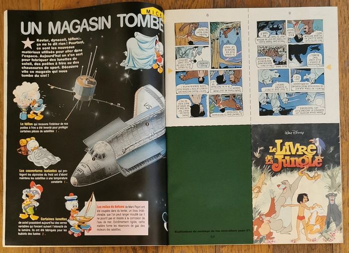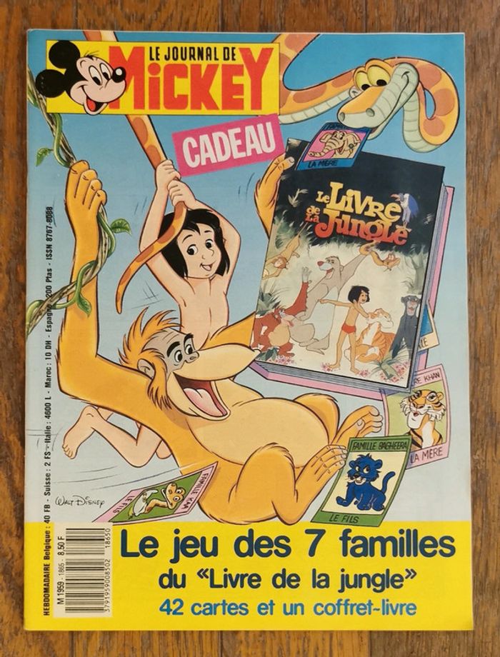 Ancien journal de mickey avec cadeau jeu des 7 familles livre de la jungle 1988 N°1865 vintage