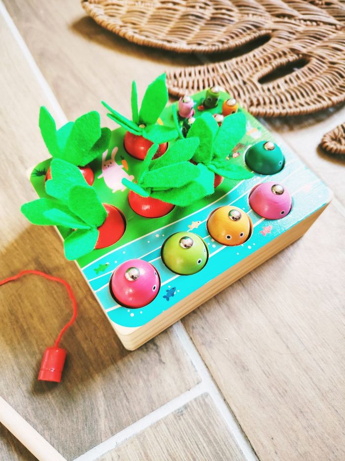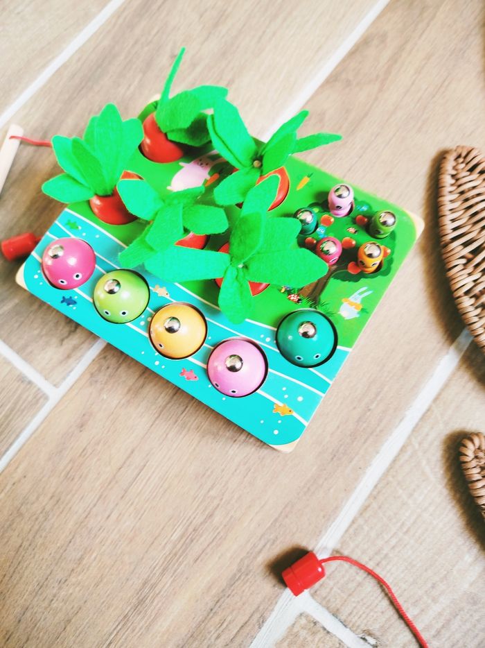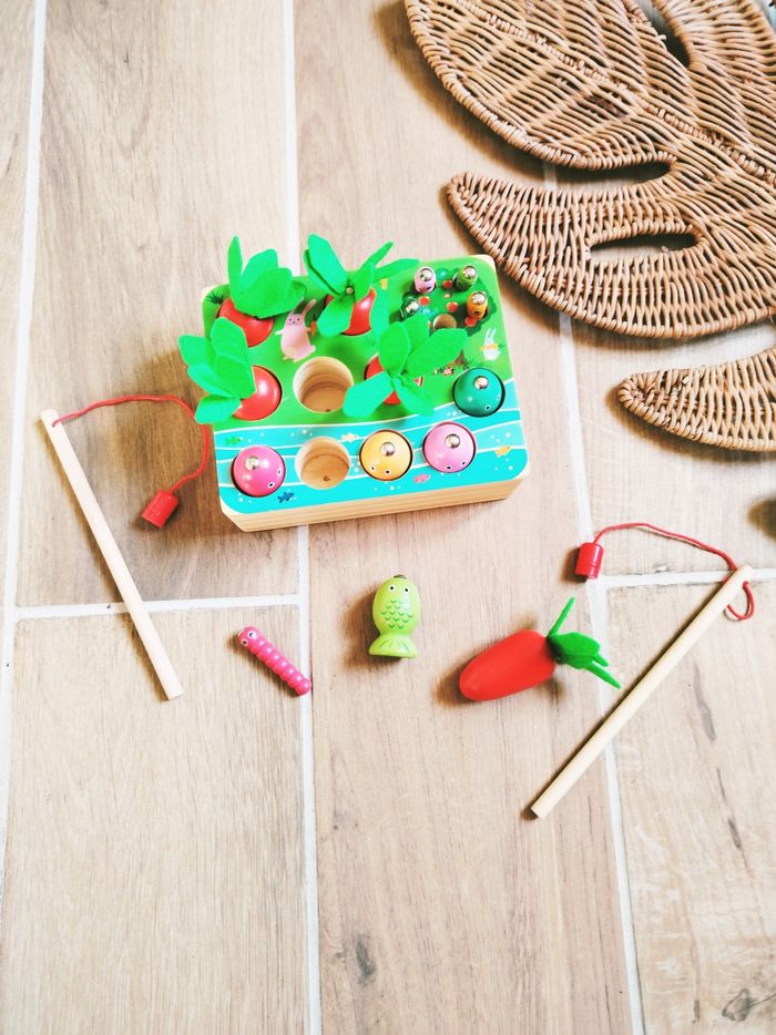 🥕 Pêche à la ligne magnétique 3 en 1 et carottes à encastrer en bois