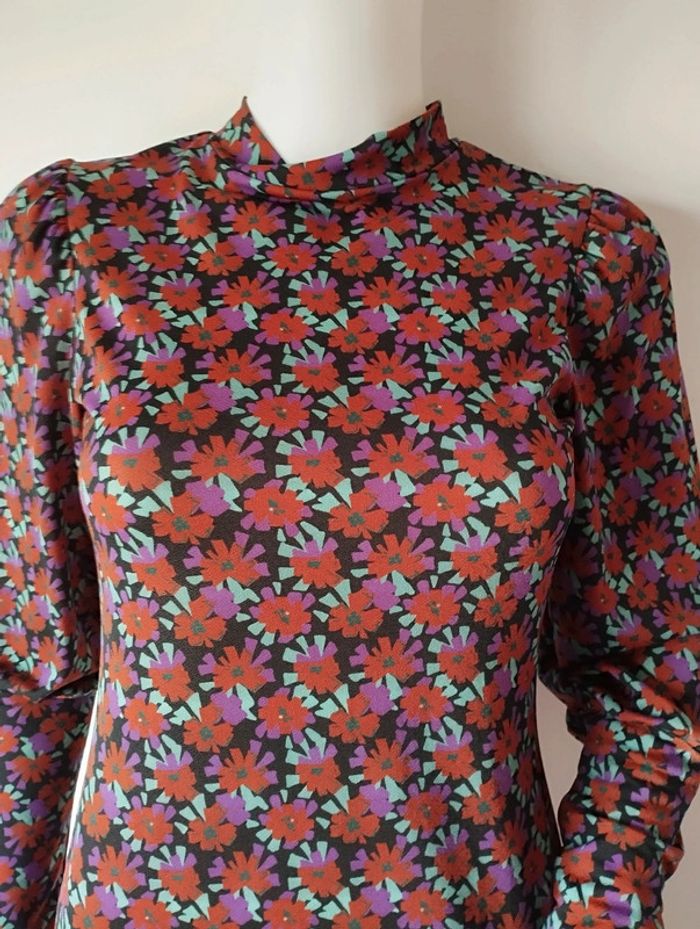 Robe col montant imprimée rétro Promod taille 36 - photo numéro 2