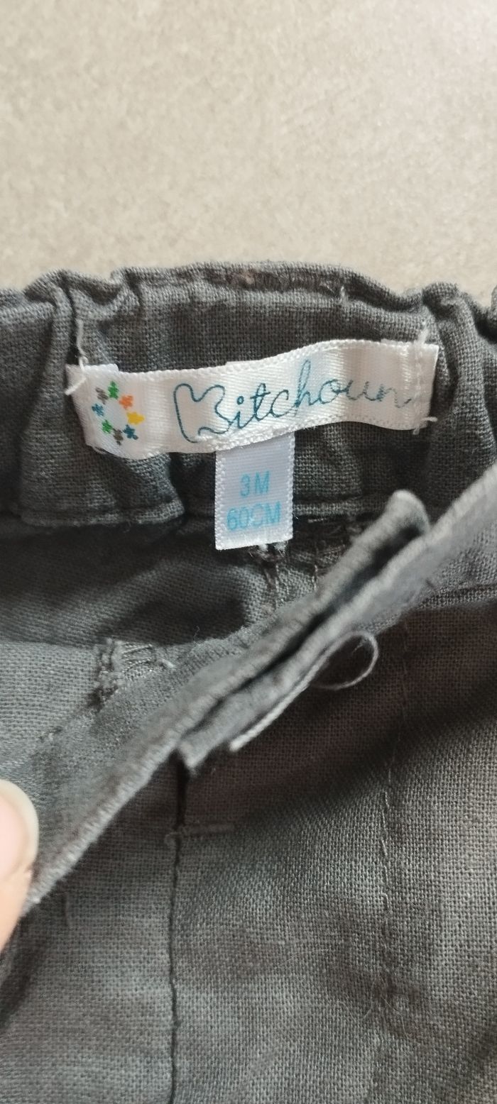 Bonjour, Je vends ce pantalon fin pour garçon en taille 3 mois de la marque kitchoun en très bon état