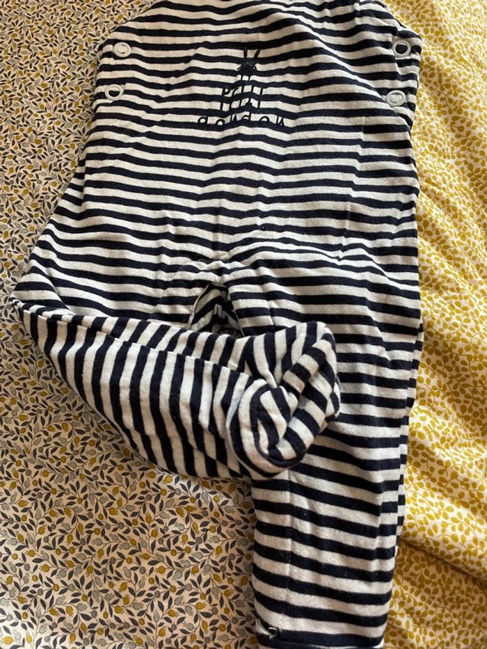 Salopette avec pieds chaude en coton épais Tape à l’œil 3 mois 59cm 🚨 Photo avec très mauvaise luminosité , la vraie couleur c’est bleu ciel et bleu marine