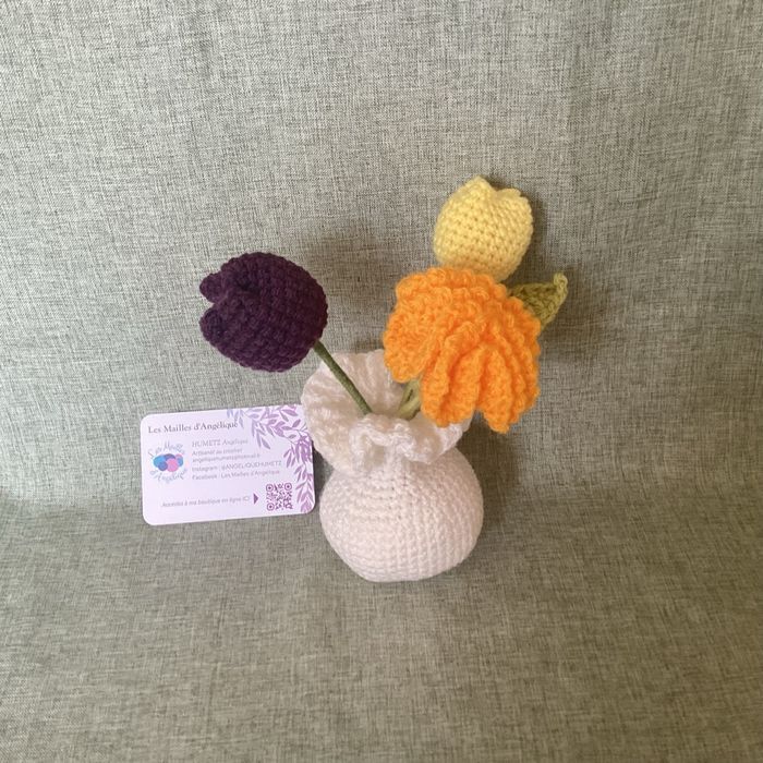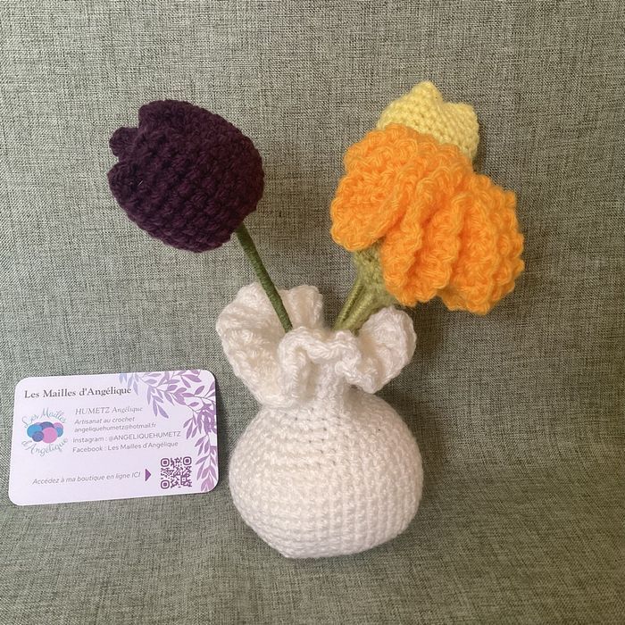 Vase et ses 3 fleurs entièrement fait à la main au crochet
