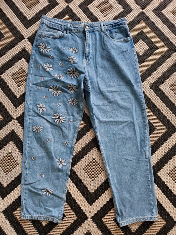 Jean femme STR  taille 44  motif floral  avec retouche - photo numéro 1