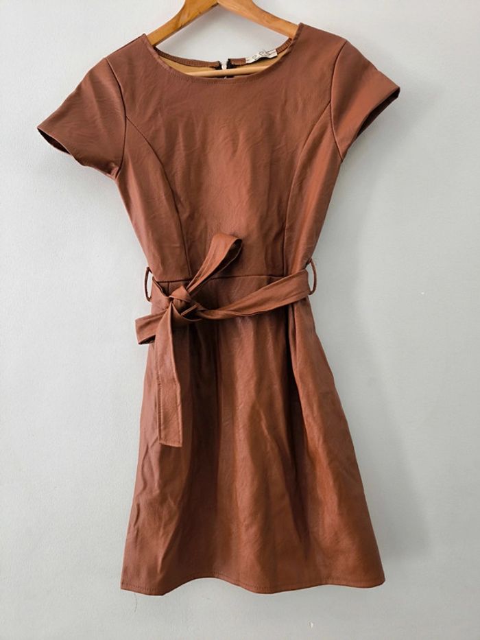 Robe courte en simili cuir  Taille s Marron chocolat - photo numéro 2