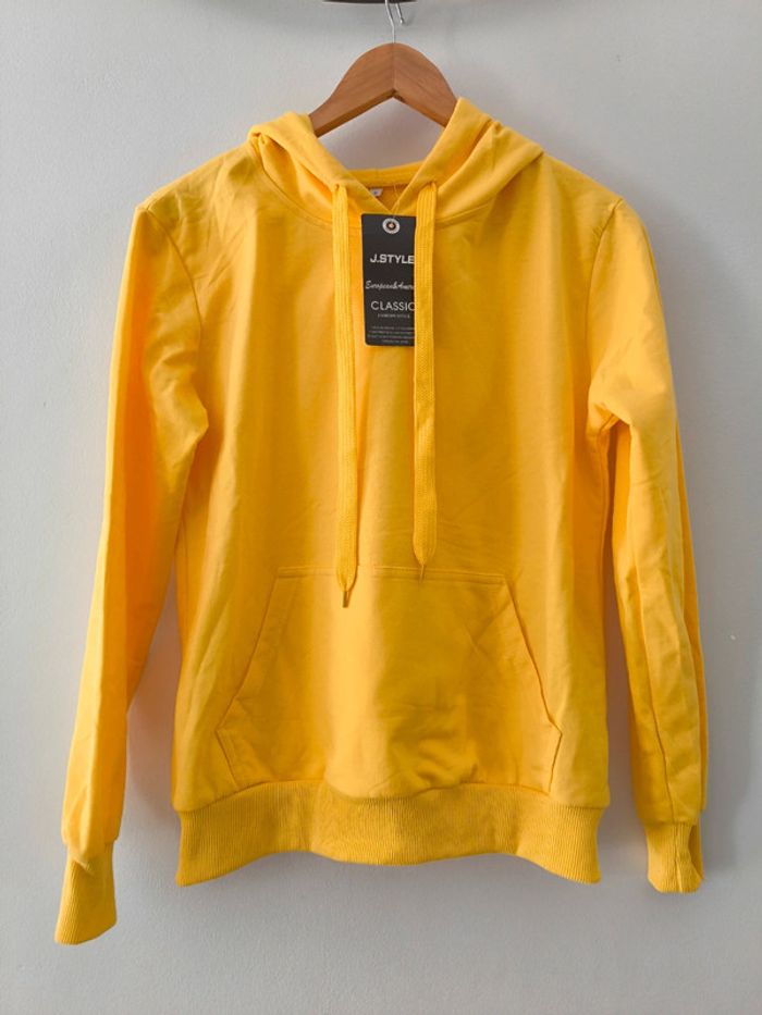 Ajoute une dose de bonne humeur à ton dressing avec ce sweat à capuche de la marque J.STYLE 🌞. Modèle neuf, jamais porté, avec une étiquette d’origine confirmant la qualité et le traitement du tissu par l’équipe design. Style casual et lumineux, idéal pour les looks streetwear ou cocooning ! - Marque : J.STYLE – European & America Classic Fashion Style - Coloris : jaune éclatant - Détails : capuche avec cordon, poche kangourou, finitions côtelées - Taille : S - État : neuf avec étiquette - Matière confortable et durable 📌 Parfait pour les fans de looks vitaminés et décontractés 📌 Peut se porter seul ou en superposition sur t-shirt ou chemise #JLAs 25/1