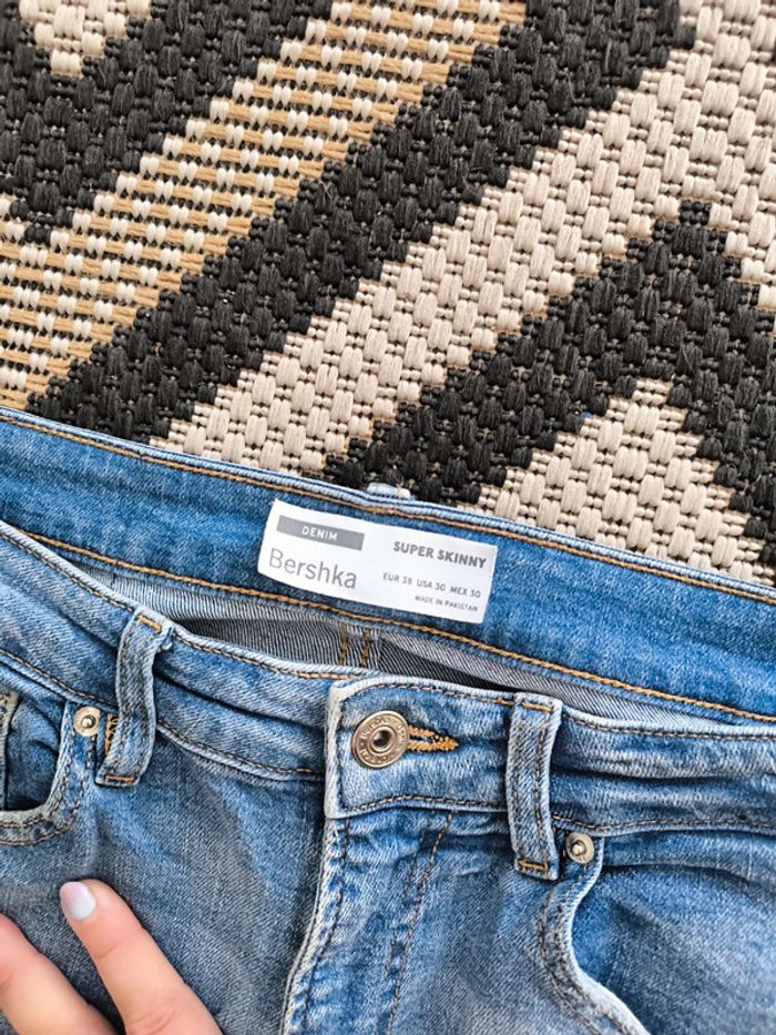Look tendance assuré avec ce jean super skinny BERSHKA en denim bleu clair. - Taille : 38 – Coupe femme - Coupe ajustée super skinny, épouse la silhouette avec style - Effet légèrement délavé & usé pour une touche moderne - Fermeture zip + bouton, cinq poches fonctionnelles - Matière avec une pointe d’élasthanne pour un confort optimal ✨ Très bon état, peu porté. Vous pouvez voir tout mon 38 en cliquant ici 👇 #JLA38 5/70