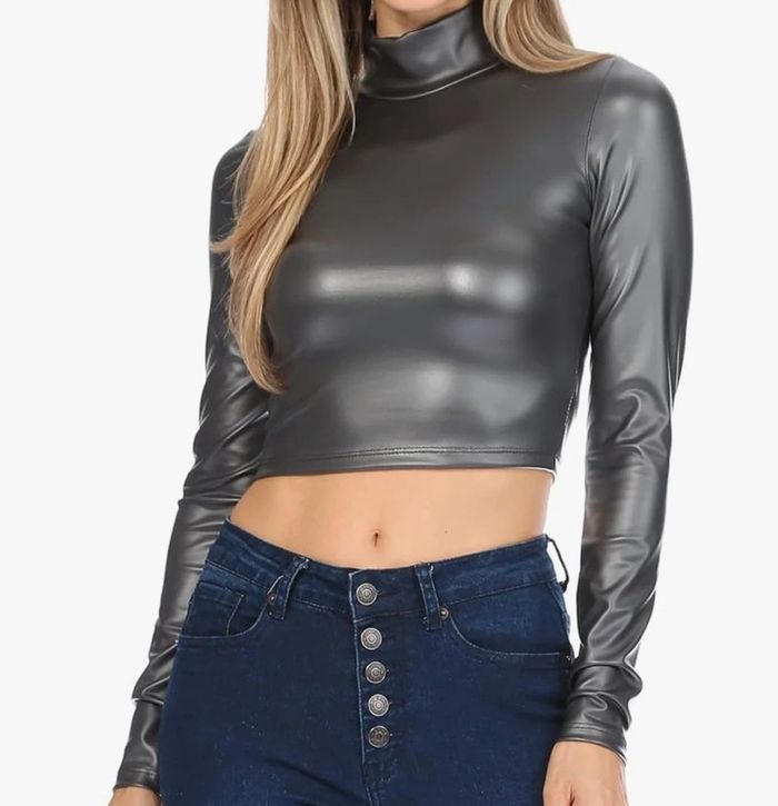 Haut à manches longues et col montant, en matière brillante effet métallisé gris foncé, au style à la fois moderne et audacieux. - Taille : M - Coupe courte (crop top), parfaite pour mettre en valeur la silhouette - Matière extensible, douce et confortable - Idéal pour une soirée, un concert ou un look urbain tendance 🆕 Neuf, jamais porté Vous pouvez voir tout mon 38 en cliquant ici 👇 #JLA38 6/70