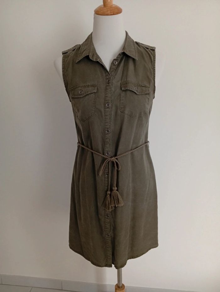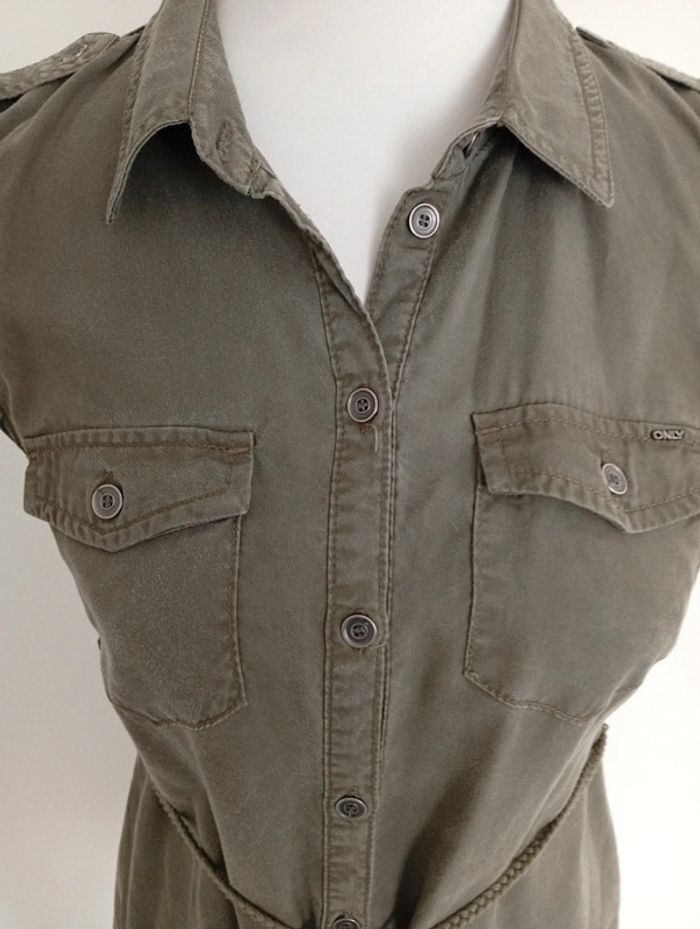 Only - Robe "chemise" taille 34 | kaki - sans manches - photo numéro 4