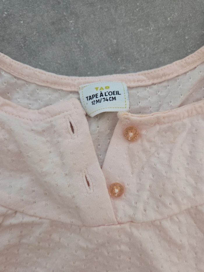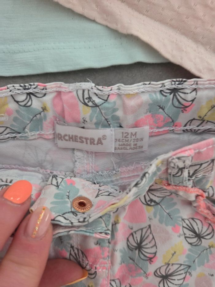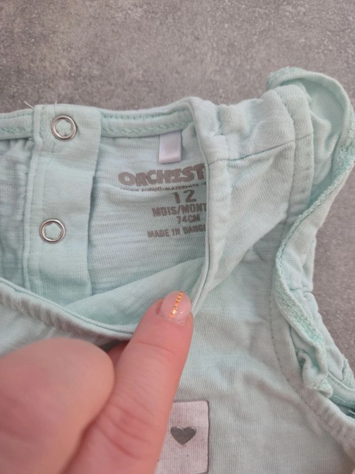 Ensemble 3 pièces bébé fille 2 t-shirt turquoise rose pantacourt motifs T12mois TBE orchestra - photo numéro 4