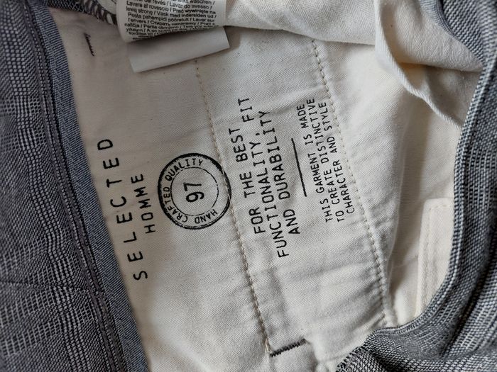 Pantalon de marque Selected, de taille W32 L34. Très bon état. Je vends d'autres vêtements de toutes tailles homme, femme.