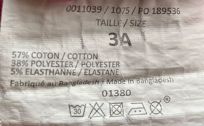 Panique Sans tache 3 ans 57% coton 38% polyester 5% elasthanne