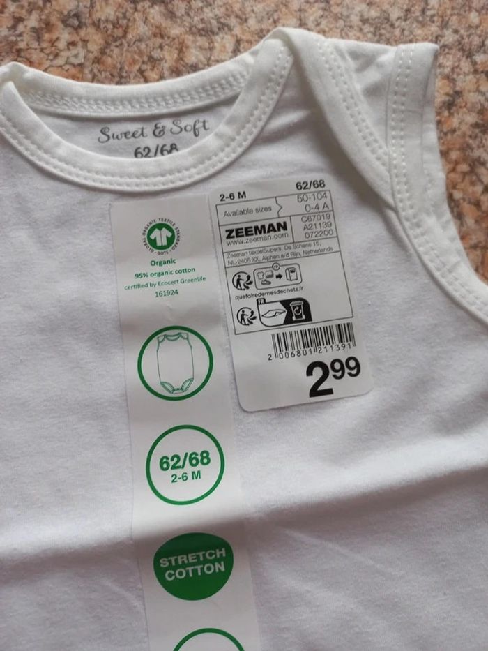 2 body neuf blanc et noir 2/6 moi et 6/12 mois