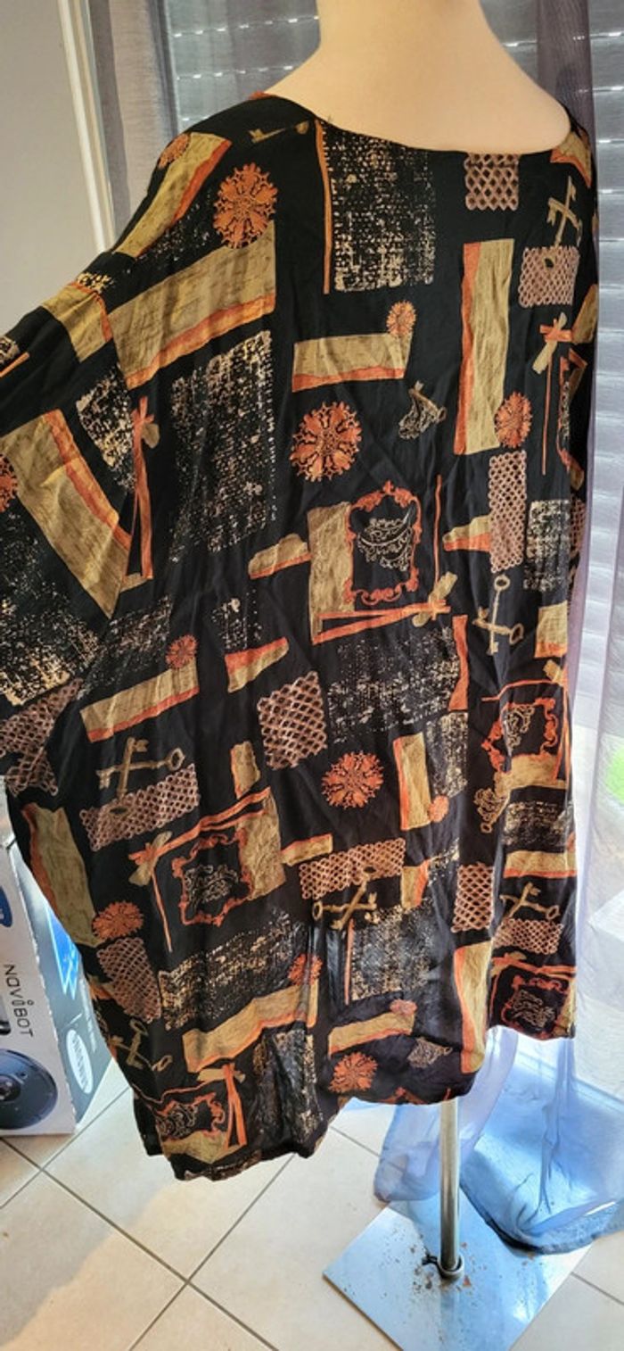 Description : Ajoute une touche artistique à ton dressing avec cette chemise à manches longues au motif géométrique et dessins . Fond noir rehaussé de tons orangés, beige et jaune, elle combine caractère et élégance. Boutons blancs sur le devant, coupe droite, idéale portée ouverte ou fermée. 🔸 Taille à préciser – coupe confortable 🔸 Motif rétro unique – parfait pour un look affirmé 🔸 Très bon état – portée très peu 🔸 À assortir avec un jean flare ou une jupe en cuir pour un style affirmé Fabrication française ! Pleins d'autres vêtements à petits prix #a2life_taille50 #a2life_taille52 #a2life_taille54