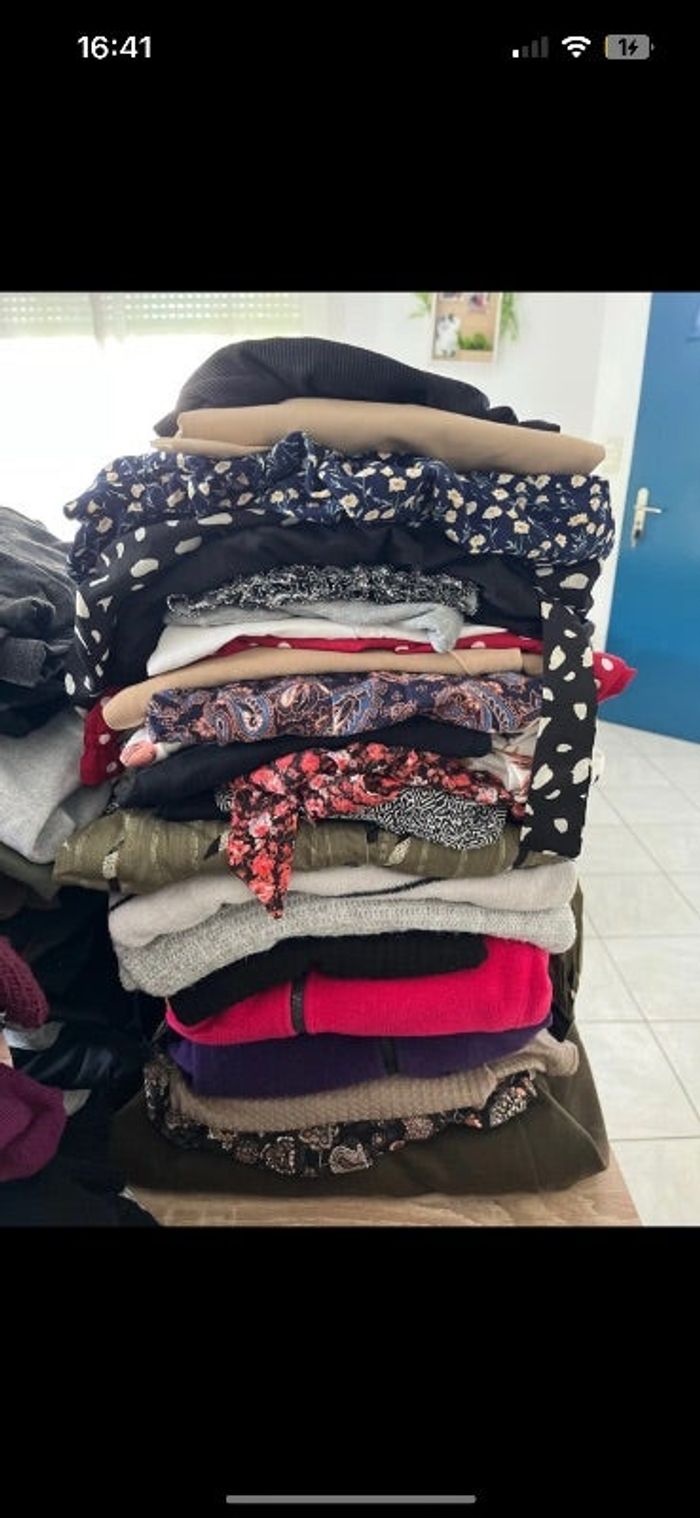 Taille 40 Toutes marques Robes, pulls, manteau, hauts, short, pantalon… Très bon état, certains articles sont neufs Environs 25 articles
