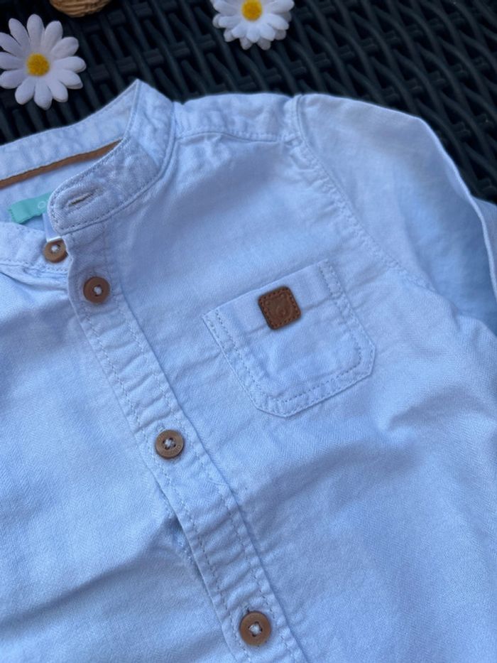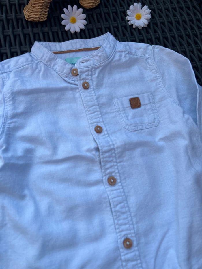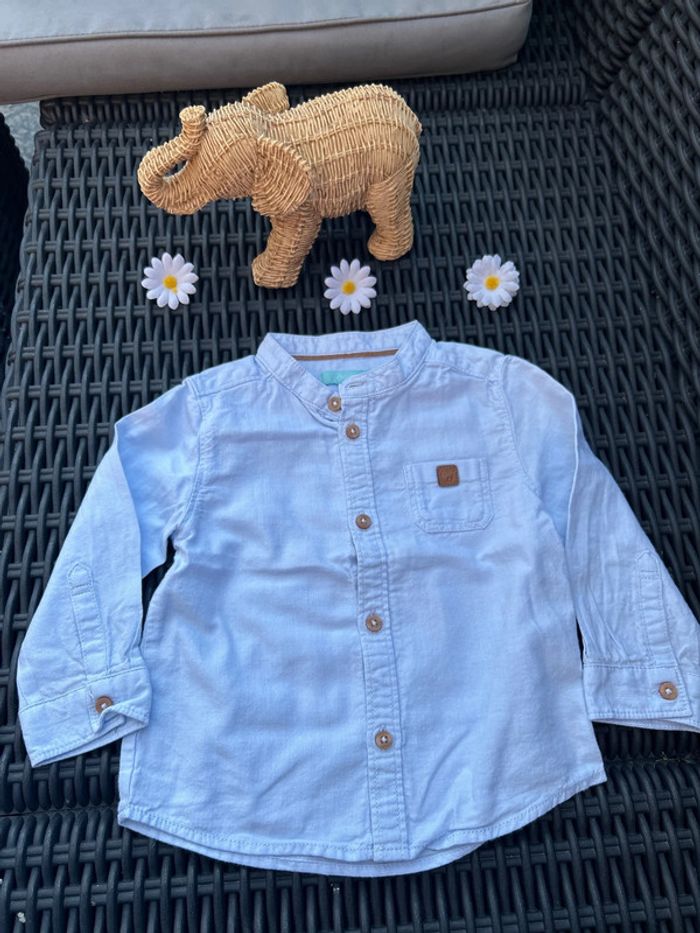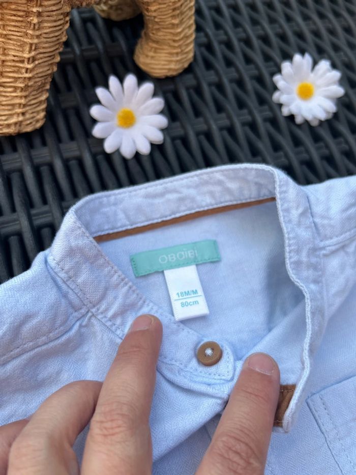 Chemise okaidi Très belle Bleu clair Je viens de m’apercevoir petites taches vers l’arrière voir photo Mise une fois