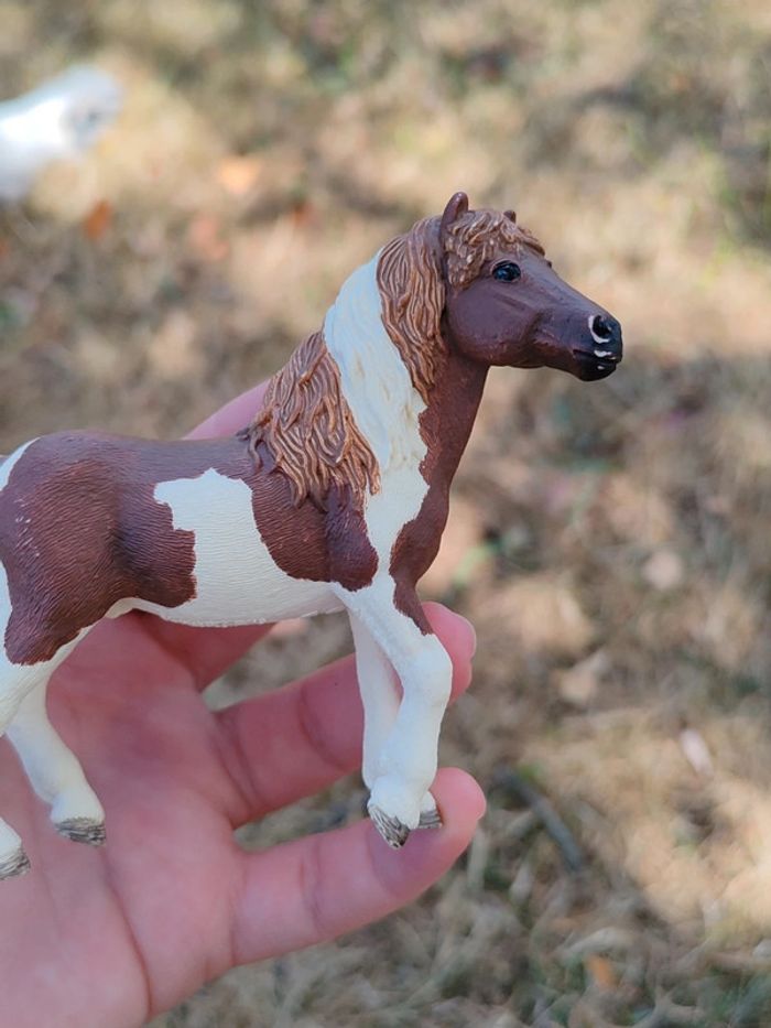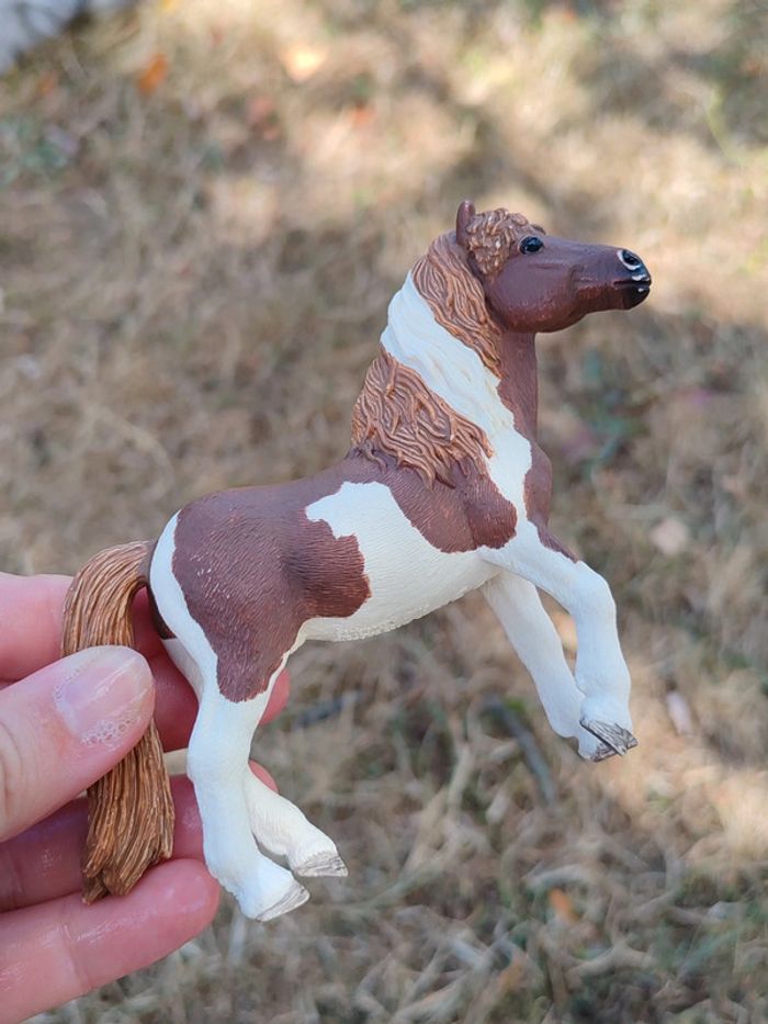 Figurine poney cheval Schleich marron et blanc - photo numéro 1