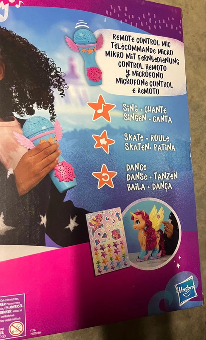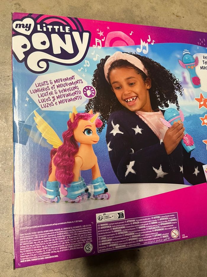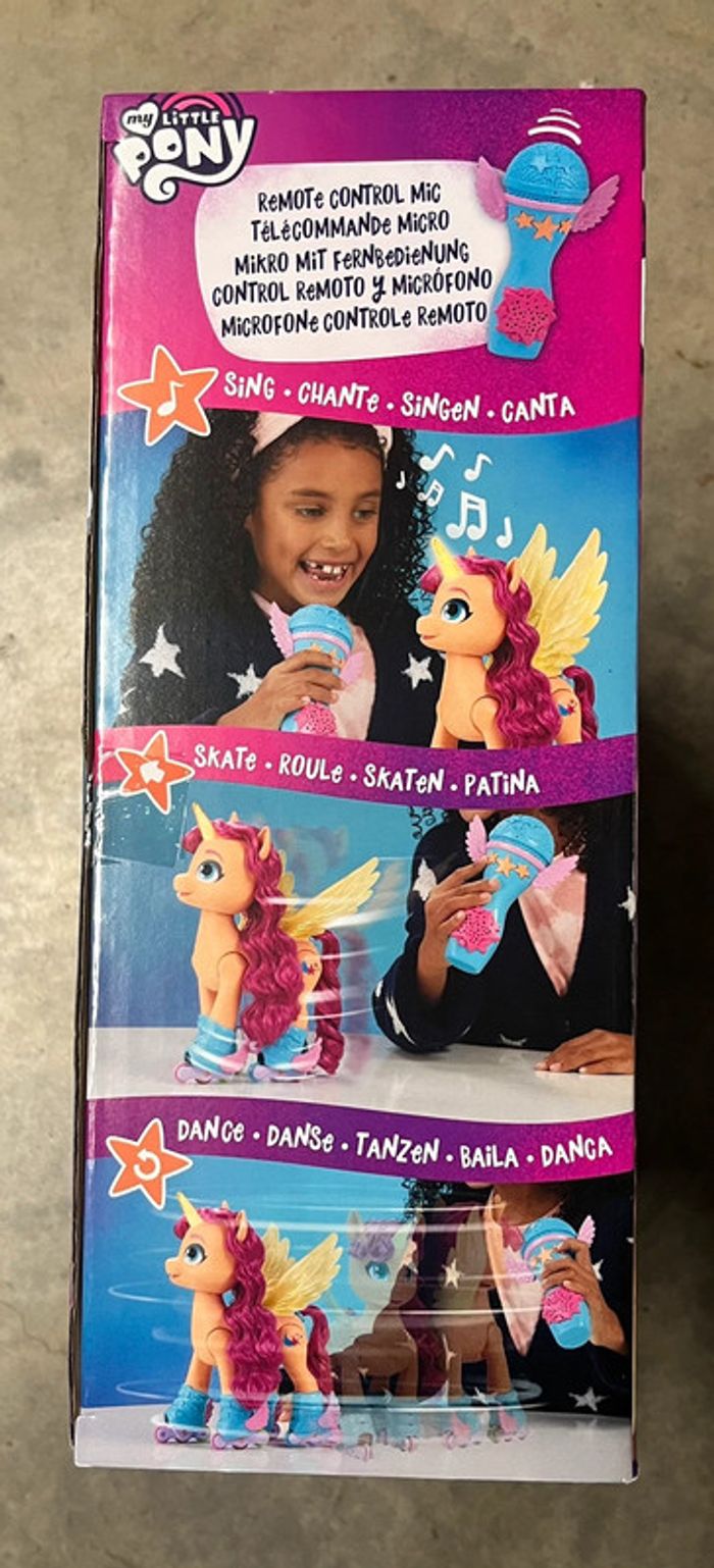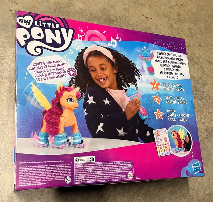 Sunny Starscout en rollers est un poney interactif que votre va adorer contrôler par télécommande. Un micro sans fil est inclut pour chanter ou s'en servir comme télécommande. Les boutons du micro vont faire rouler la figurine vers l'avant ou la faire tourner en cercle. Remuer la télécommande micro et la figurine va bouger !