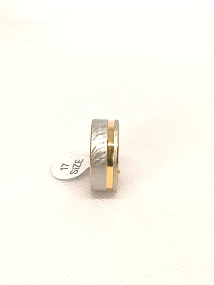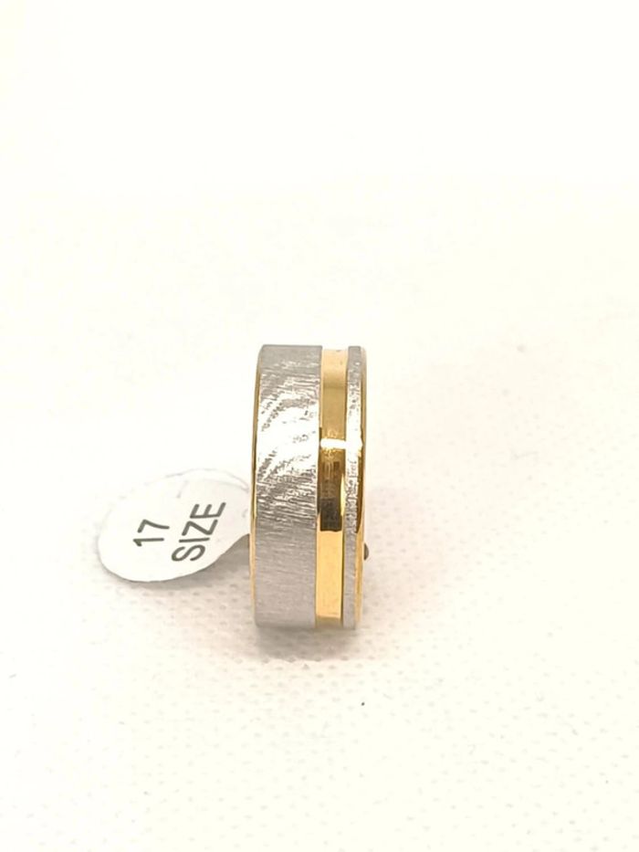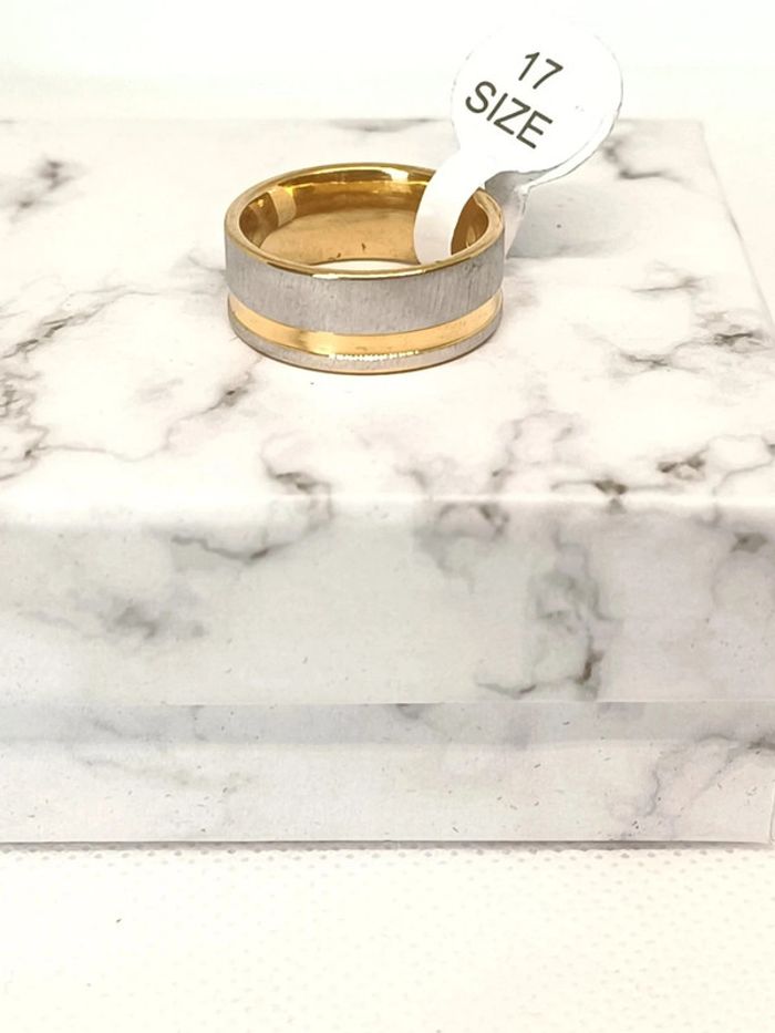 Bague anneau acier doré et argenté type alliance - photo numéro 1