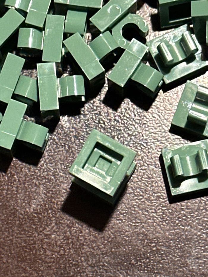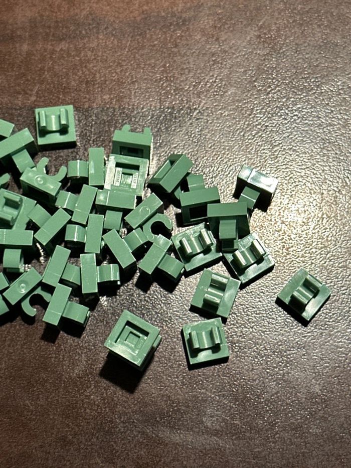 20 Lego, Tile, Modified 1 x 1 with Open O Clip, ref 15712 Sand Green - photo numéro 3