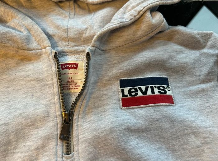 Sweat Lévis court taille noté 16 ans 164cm mais convient pour un 14 ans Une tache peu visible sur photo 4.