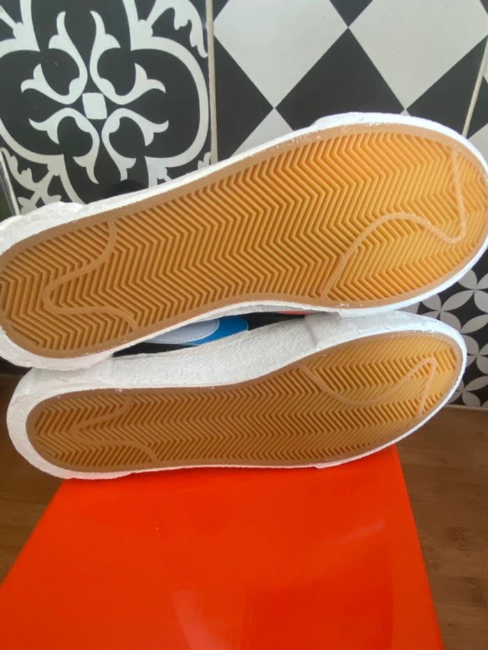 ⚠️ envoi via service de vérification ou si envoi pièce identité au nom de la personne qui reçoit le colis. Sinon remise main propre axe Caen - Flers (Occasionnellement Val de Marne / Bretagne Sud) Nike Blazer Mid Sacai White Black Legend Blue Neuves jamais portées conservées en boîte (elle même dans sa boîte carton) a l’abris de la lumière. DS Cop SNKRS Paire collector de 2019 Nike s’associe à la marque nippone Sacai pour une silhouette inédite ! En partenariat avec la designer Chitose Abe, la marque américaine donne un second souffle à l’un de ses modèles emblématiques : la Nike Blazer. Déclinée en deux versions, White Black Legend Blue et Snow Beach, cette collaboration fait suite à la collection révélée lors de la fashion week parisienne Printemps/Été 2019. Le design de cette Nike Blazer Sacai White Black Legend Blue est comme dédoublé... Son upper est en cuir et oscille entre des tons blancs, bleus et noirs. La languette, les lacets, le Swoosh ainsi que la semelle intermédiaire sont présentes en double, renforçant l’aspect déstructuré tout en donnant à ce modèle un design unique ! Avec cette création, Nike et Sacai sortent l’une des collab les plus attendues et plébiscitées de l’année ! SKU : BV0072-001 Date de sortie : Avril 2019 Colorway : WHITE/-BLACK-LEGEND BLUE