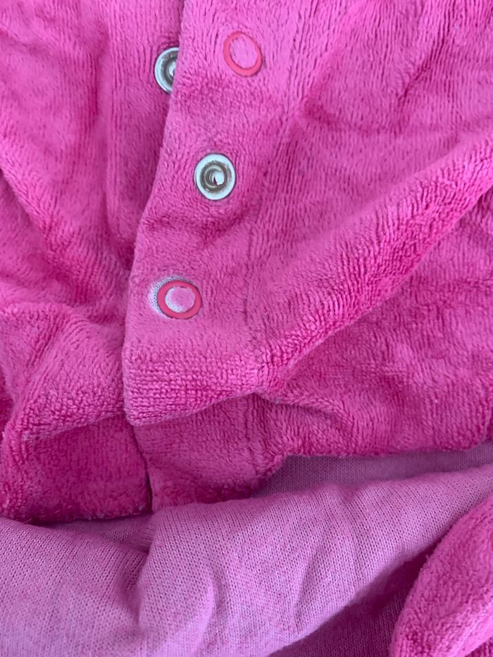 Pyjama en velours. Signe d’usure sur l’une des pressions (cf. photo). Taille : 6 mois.