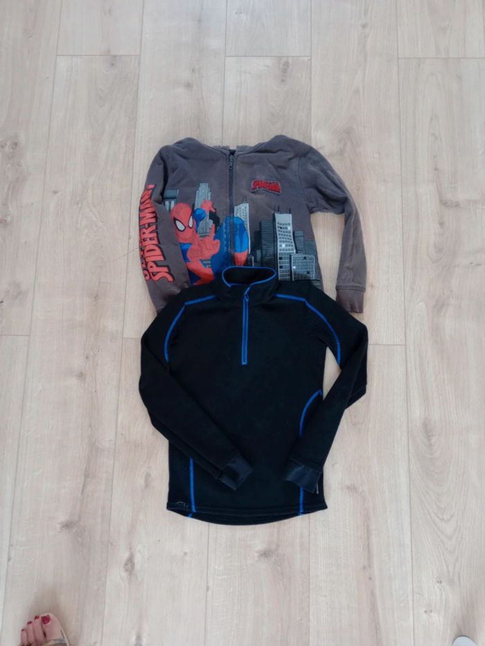 Lot composé de 2 articles : Un sweat type polaire avec fermeture au niveau du cou " stratermic" Plus d'étiquette matière ni taille Et d'un gilet zippé Spider-Man 6 7 ans offert Ce dernier est en état satisfaisant, présence de petits trous au niveau des manches voir les deux dernières photos, et décoloration solaire Attention je précise... il est offert... Il ne fait pas l'objet d'évaluation... si vous ne le voulez pas merci de me le faire savoir 😉 #carineleray_6a