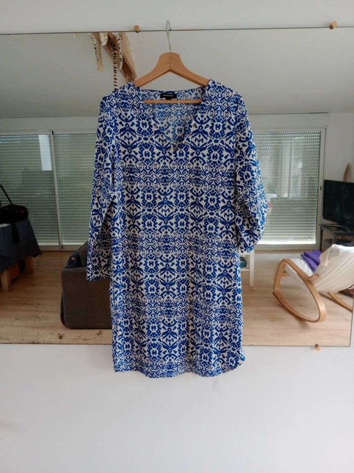 Robe 38 blanche et bleu motifs graphiques c85 - photo numéro 7
