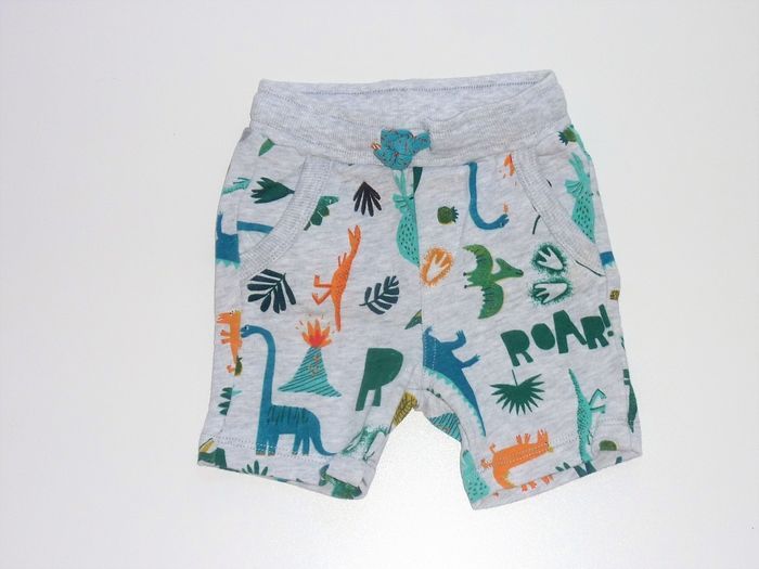 De la couleur dans le dressing de votre petit boy grâce à ce short de marque CATIMINI en excellent état ! Short en molleton de marque catimini imprimé animalier vert et orange sur fond gris. Ceinture élastique