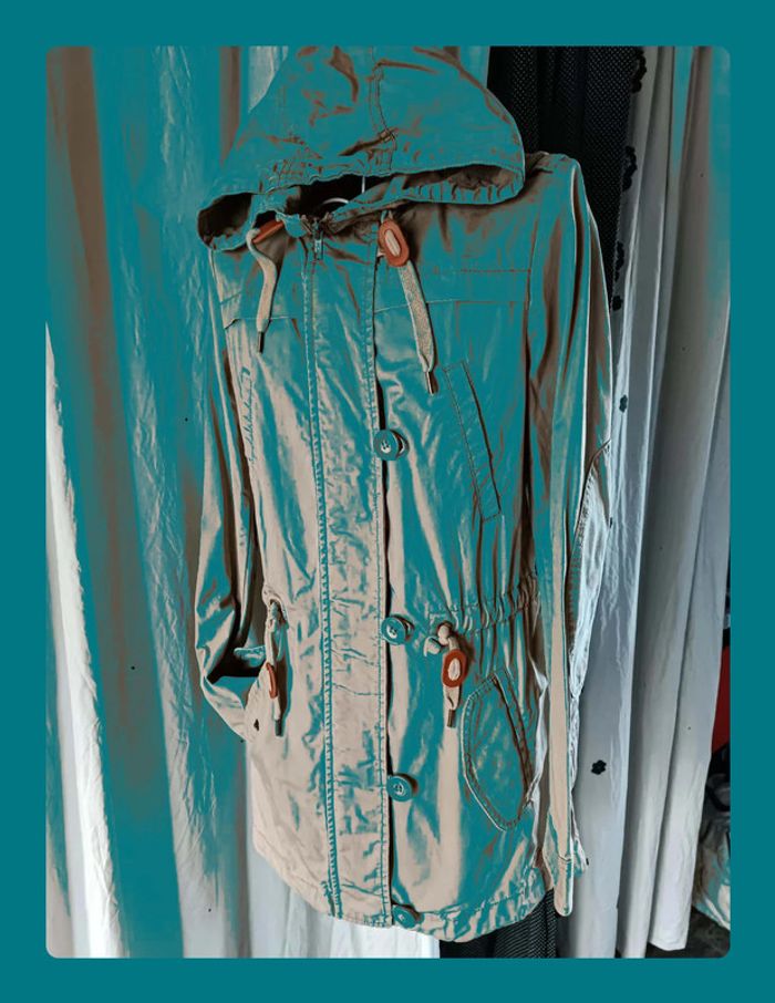 Parka en coton avec col montant, cintrée veste décontractée fermeture zippée et pressions poches à pressions cordon sous coulisse au niveau du col montant et à la taille capuche taille XS de chez Clockhouse excellent état #ka_nine_femme_vetements #ka_nine_femme_trentequatre