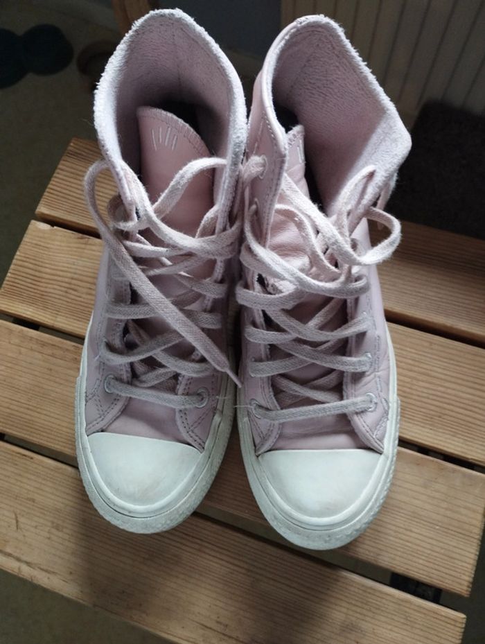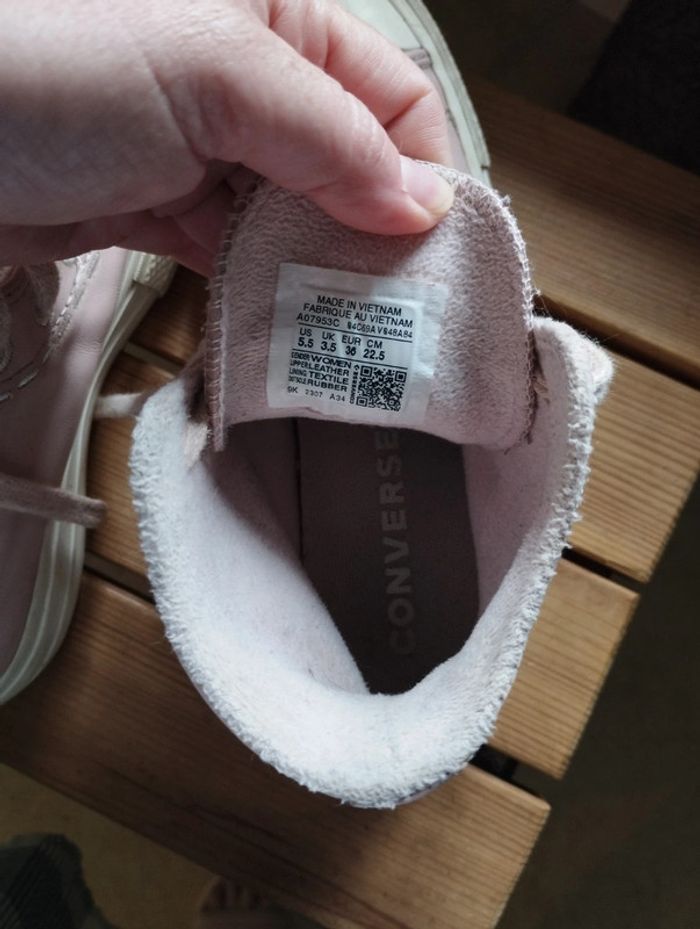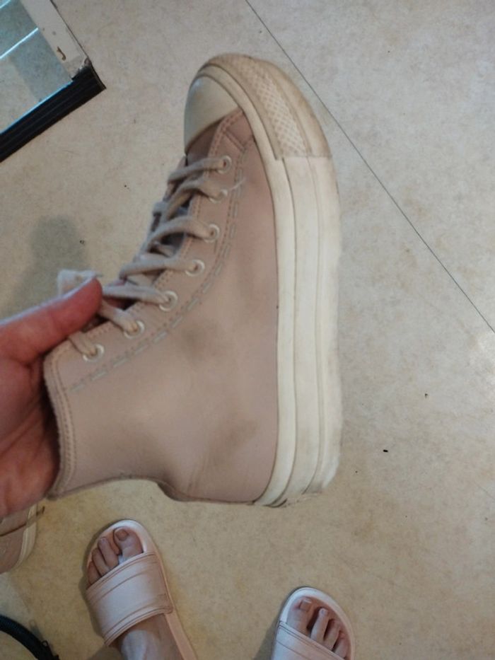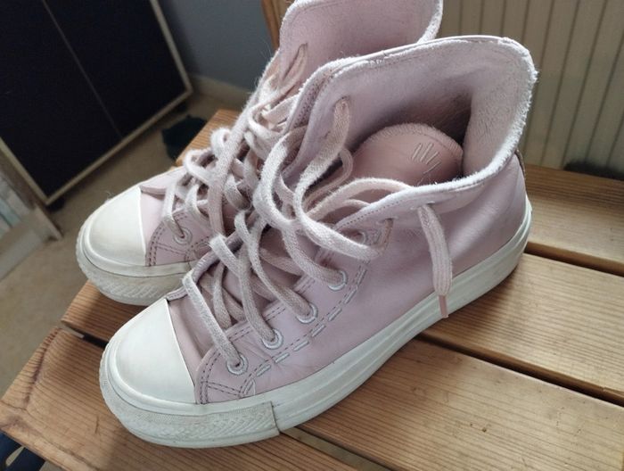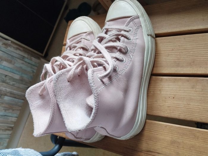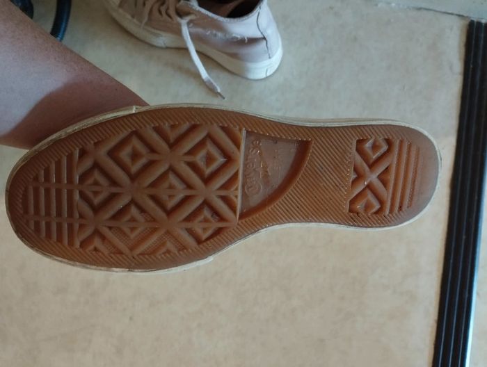 Converse en cuir peu portée donc semelles en très bon état mais quelques traces et les bords ne sont plus blanc.
